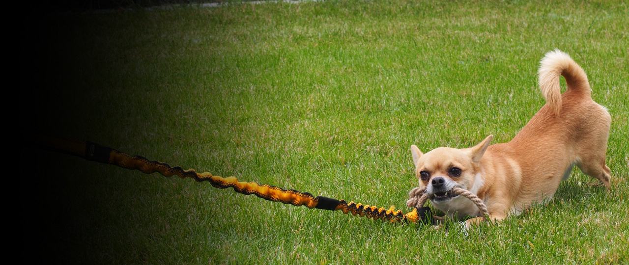 Dzięki precyzyjnemu doborowi napięcia i długości elementów amortyzujących, ten element wyposażenia doskonale współpracuje zarówno z małymi, jak i średnimi rasami.