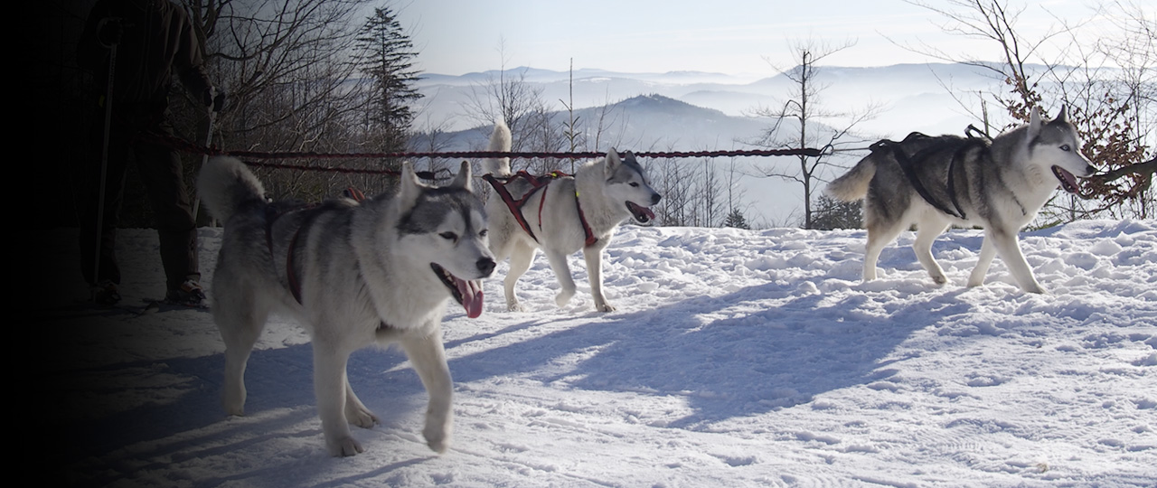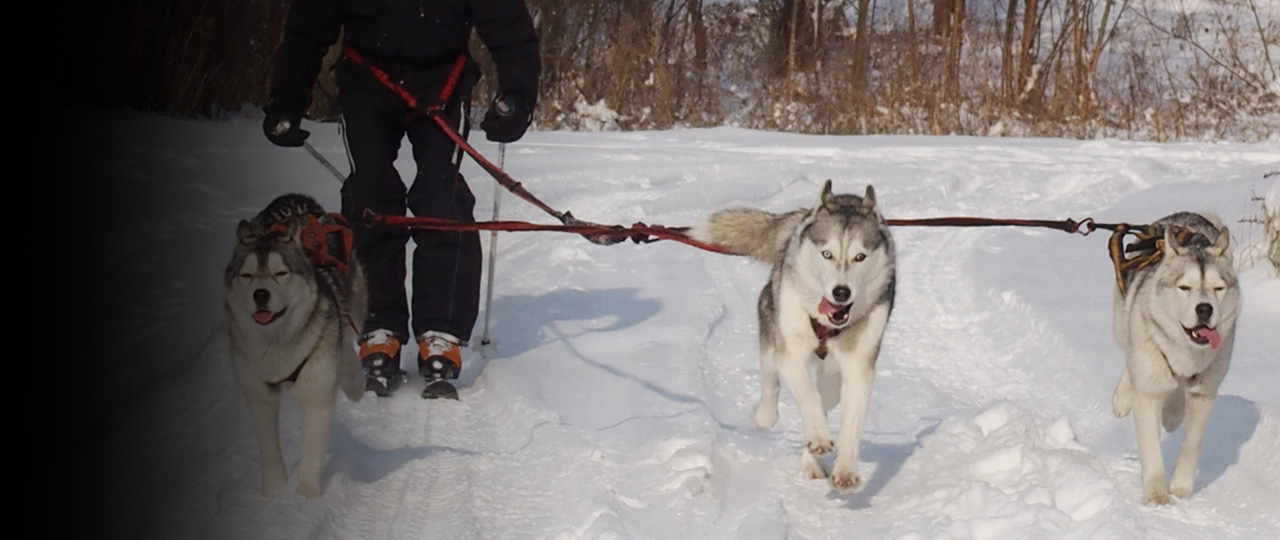 Układ V, to po prostu osobne liny amortyzowane podpięte do jednego pojazdu / pasa biodrowego - po jednej dla każdego psa. Rozwidlenie w punkcie podpięcia zapewnia maksymalny dystans rozejścia eliminując przy tym pociągnięcia między psami.