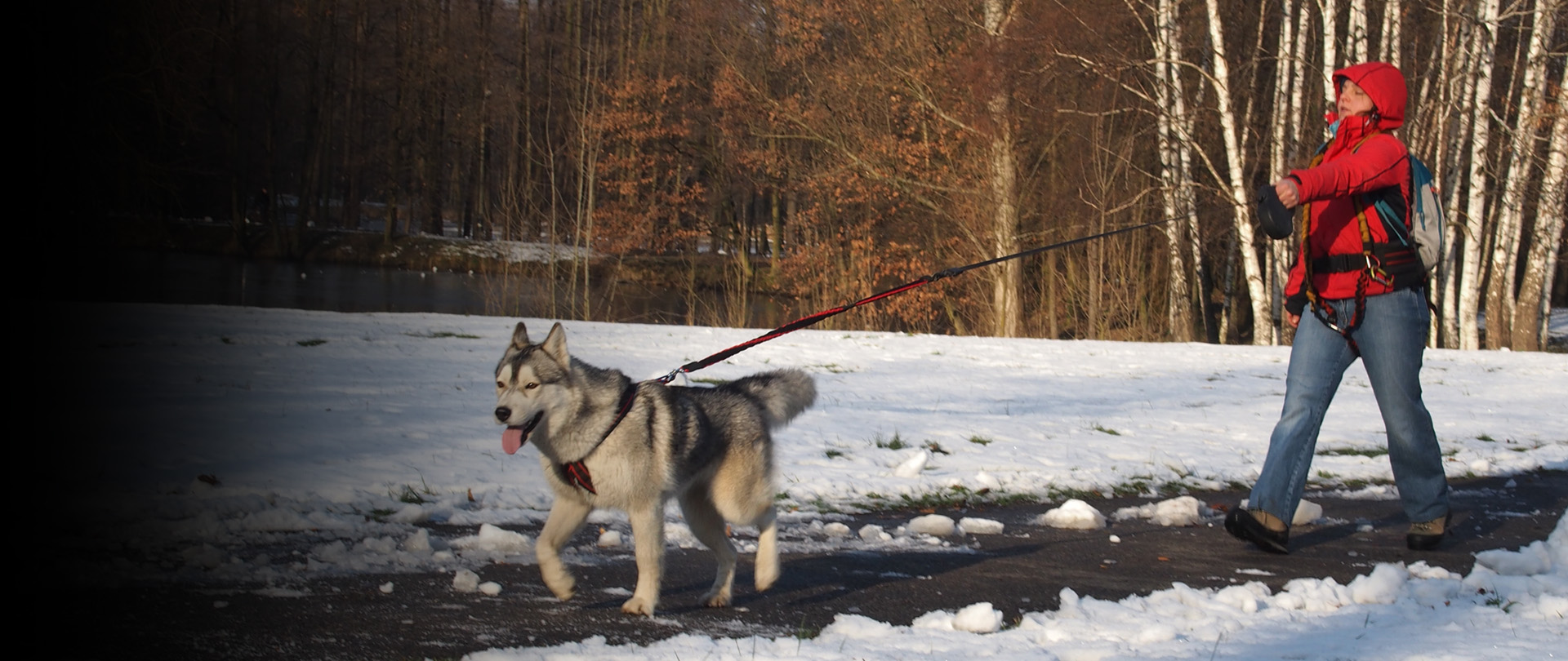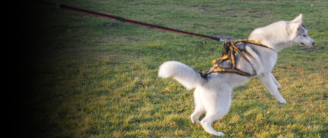 Amortyzator podpięty do smyczy absorbuje szarpnięcia odciążając tym samym stawy obu