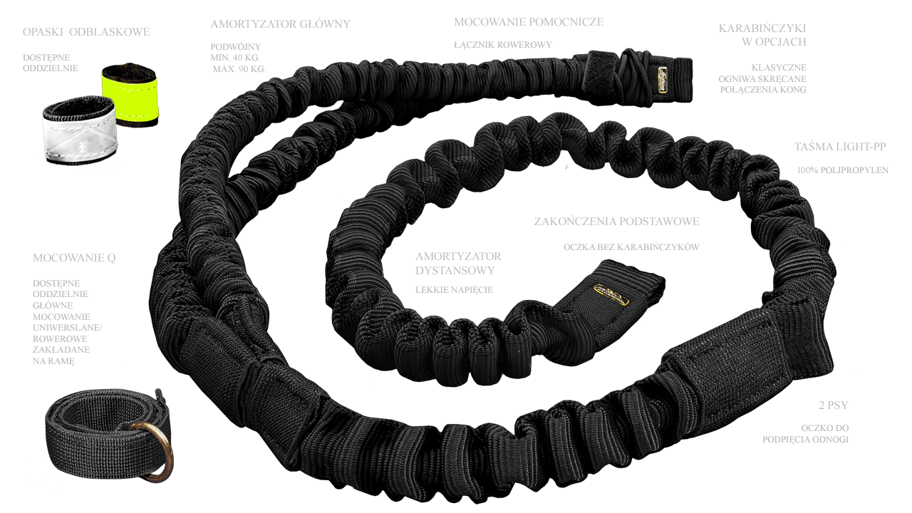 Przedziały wagowe lin amortyzowanych są dostosowywane do masy pieska/drużyny.