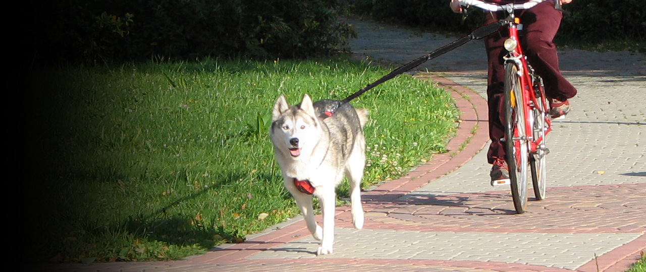 w trekkingu, na górskich wyprawach, czy z rowerem i pieskiem ciągnącym w uprzęży długiej.